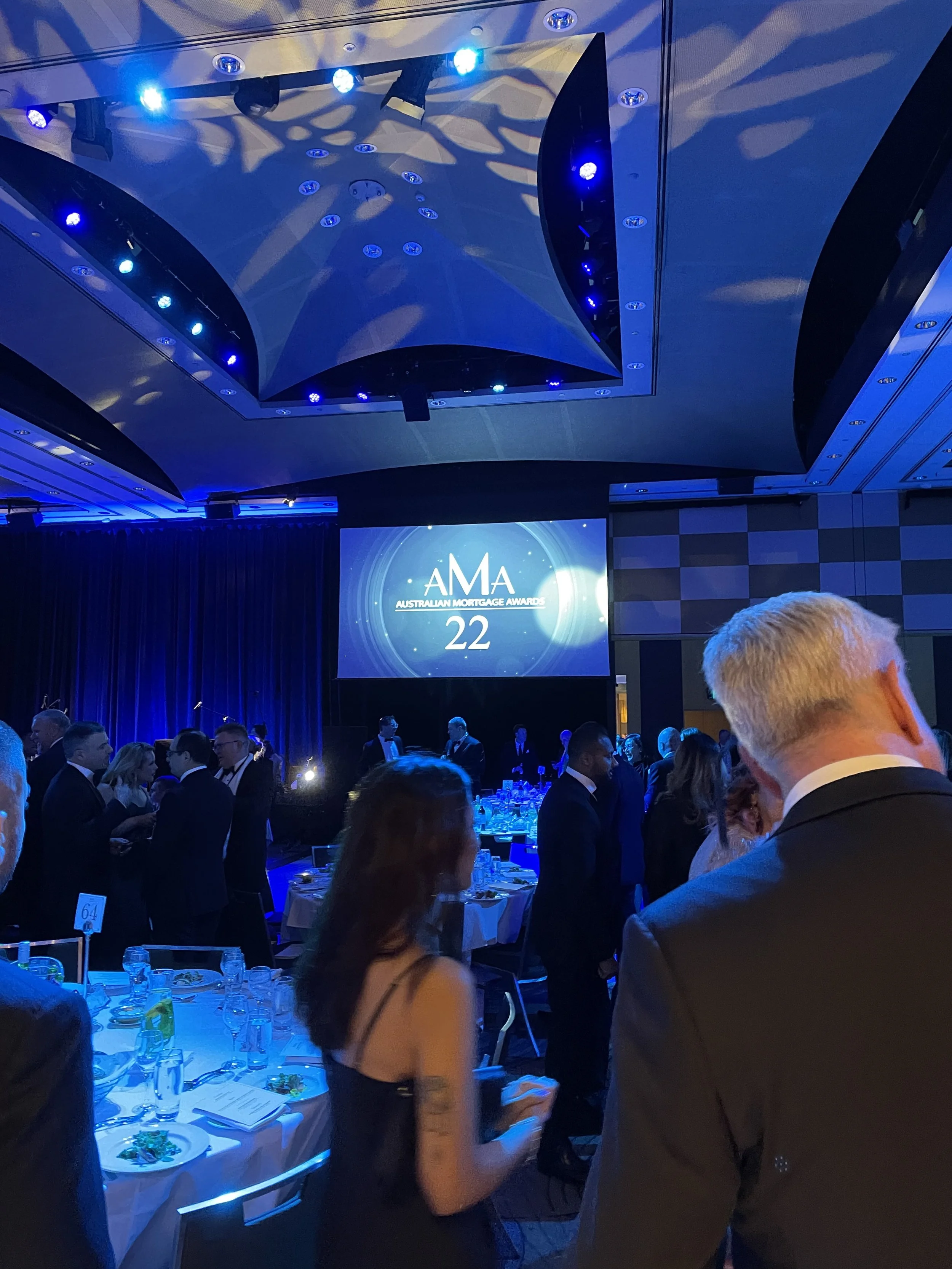 On the left: Jyh Kao. On the right: ‘In the room, on the night’ – 2022 Australian Mortgage Awards